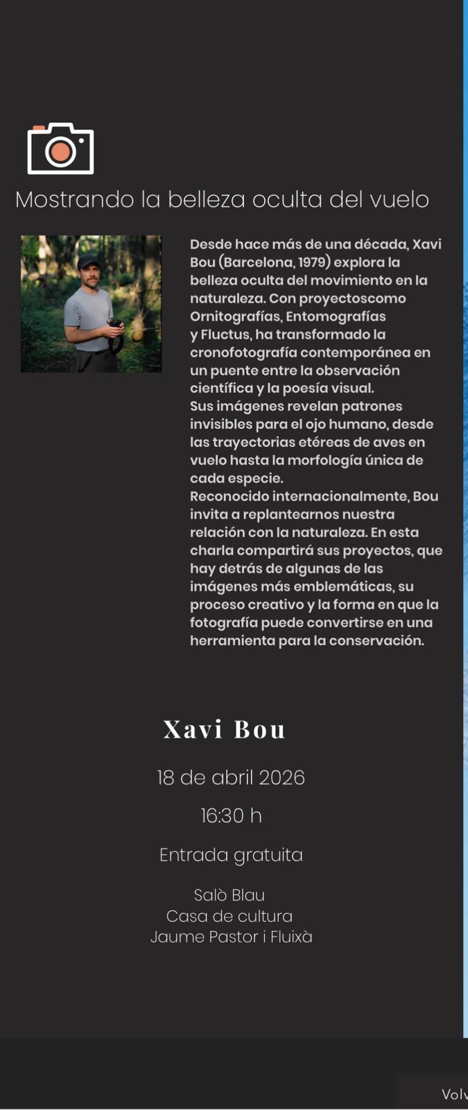 Depuis plus de dix ans, Xavi Bou (Barcelone, 1979) explore la beauté cachée du mouvement dans la nature. Avec des projets tels qu'Ornithographies, Entomographies et Fluctus, il a transformé la chronophotographie contemporaine en un pont entre observation scientifique et poésie visuelle.