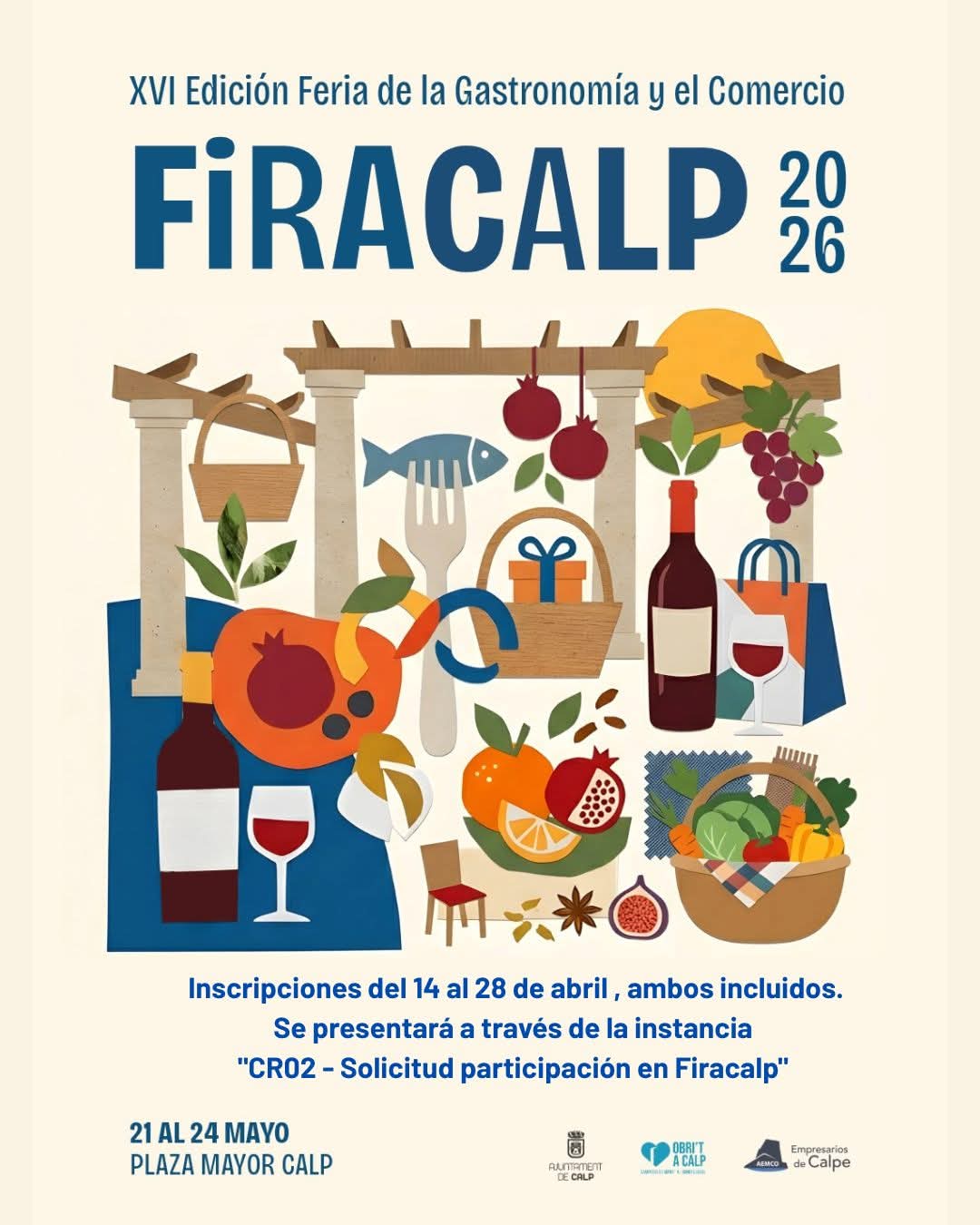 Inscripcions del 14 al 28 d'abril, ambdós inclosos. Es presentarà a través de la instància "CR02 - Sol·licitud participació a Firacalp"
